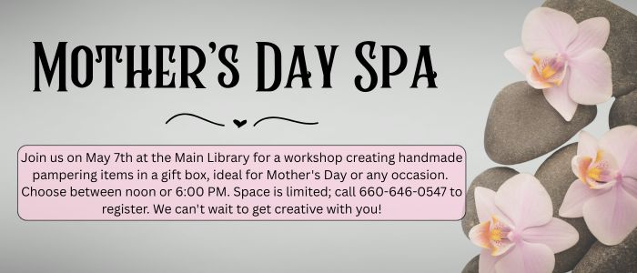 The Main Branch, located on Locust Street in Chillicothe, Missouri, offers our Adult Department materials, including Fiction, Non-Fiction, Large Print, NexGen, Audiobooks, and our outstanding DVD Collection. We offer public access computers with printing capabilities, meeting rooms, genealogy resources, and a host of services our community and visitors need.